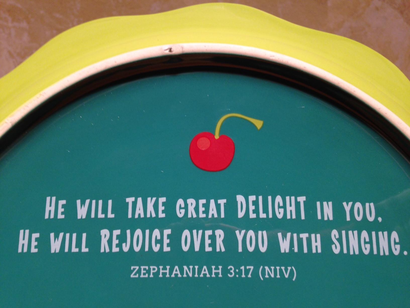 Back to the celebration: I don’t really think my grand-kids paid much attention when I read them the inscription on the back of the plate. They knew cupcakes were coming! Yet the Old Testament writer Zephaniah prophesied the power of praise . . .