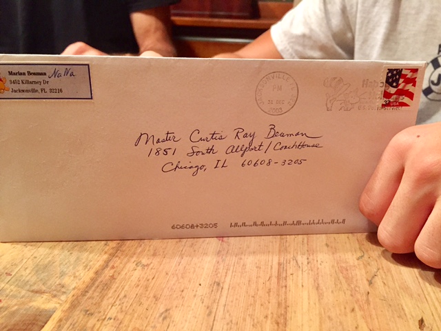At his party, Curtis opened a letter his NaNa had written to him with a December 31, 2003 postmark.