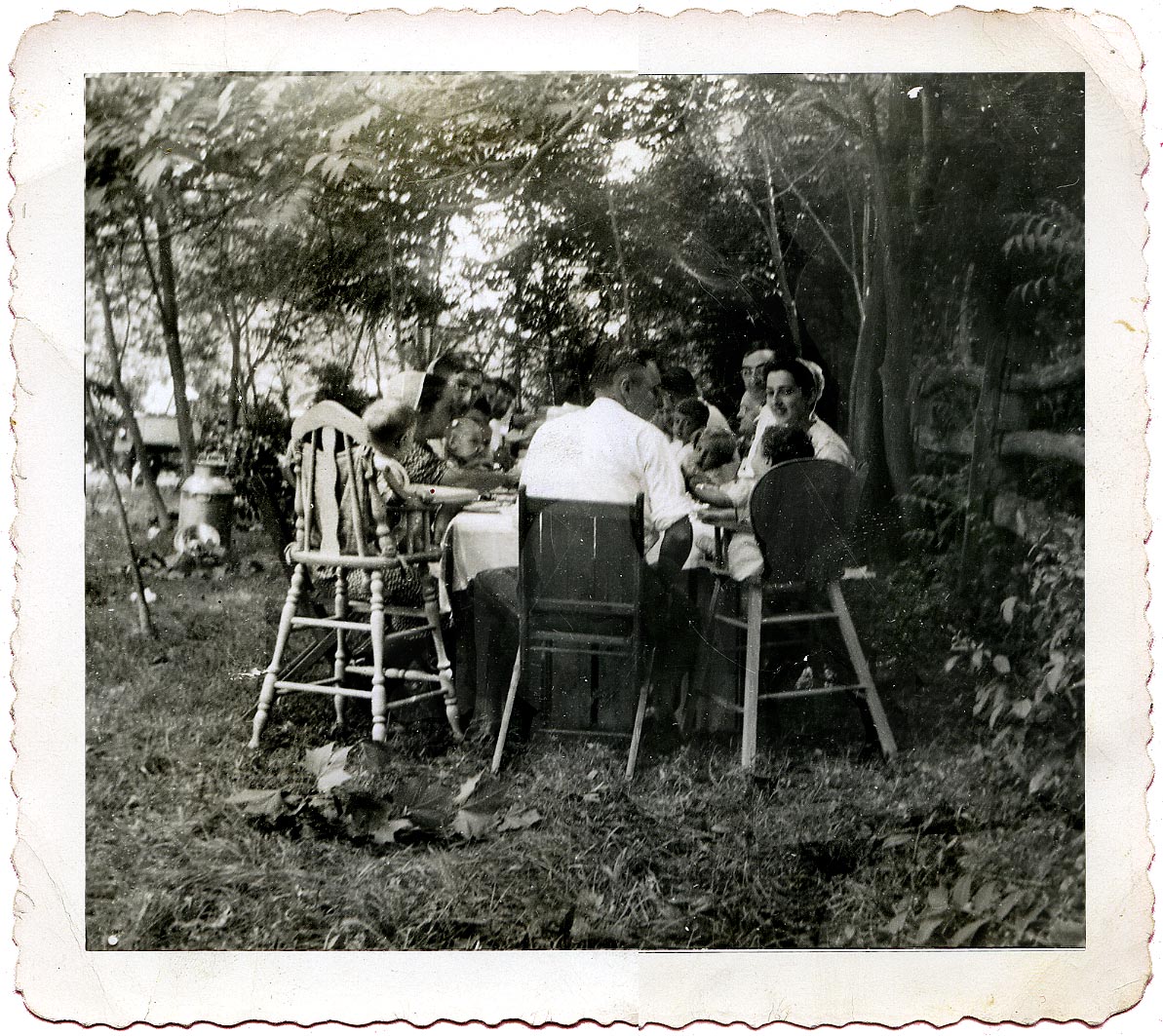 Reminiscent of Manet’s Le Dejeuner sur l’herbe (yes, it’s a stretch) but in a far simpler, Mennonite style, the Metzlers on Mother’s side of the family gather for a Sunday summer picnic In Uncle Clyde’s meadow, large crates holding up the table. After dinner the children scatter, the women clean up, and the men take down the table. I won’t be surprised when one or two of my uncles might light up a cigar rolled from home-grown tobacco.