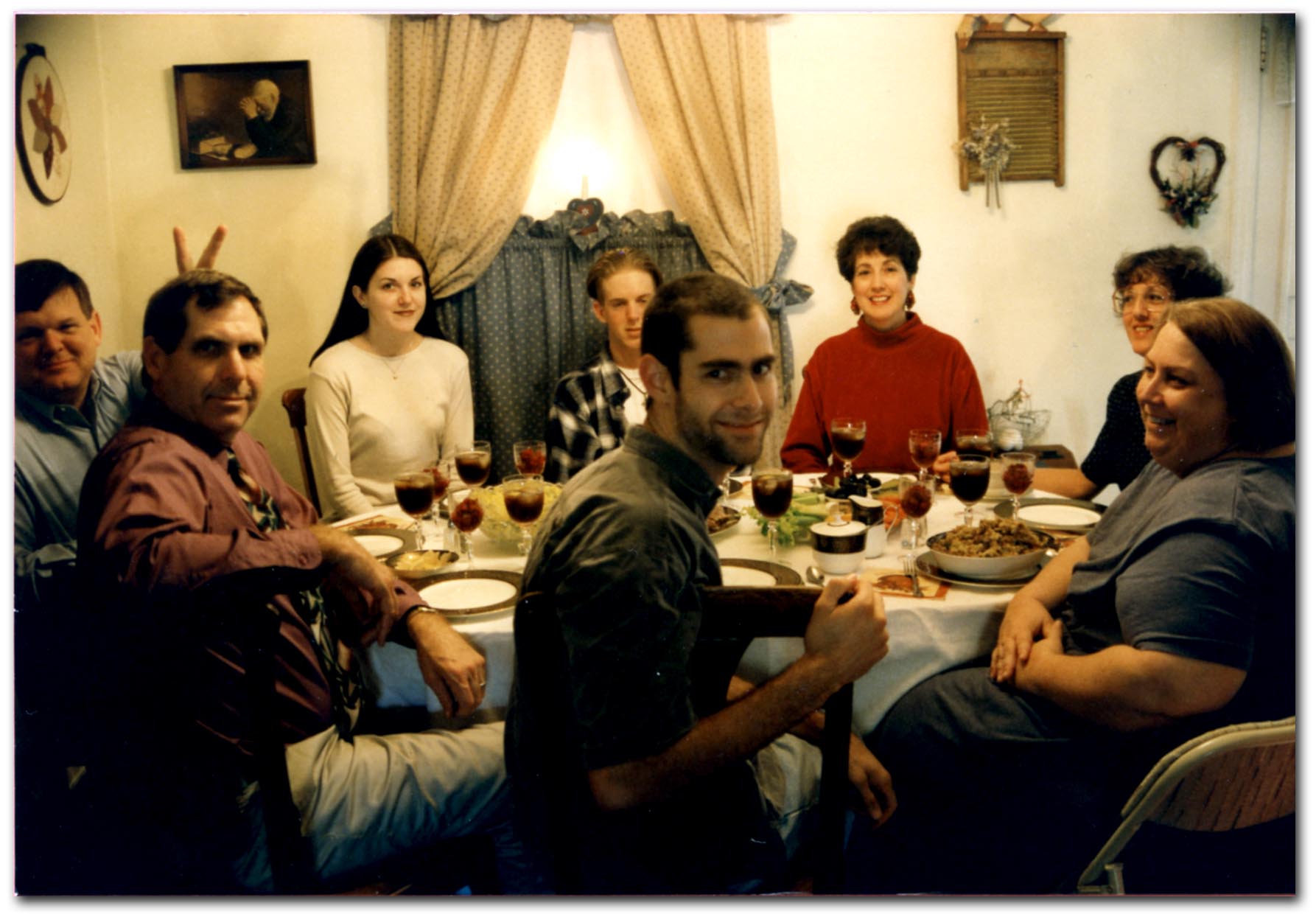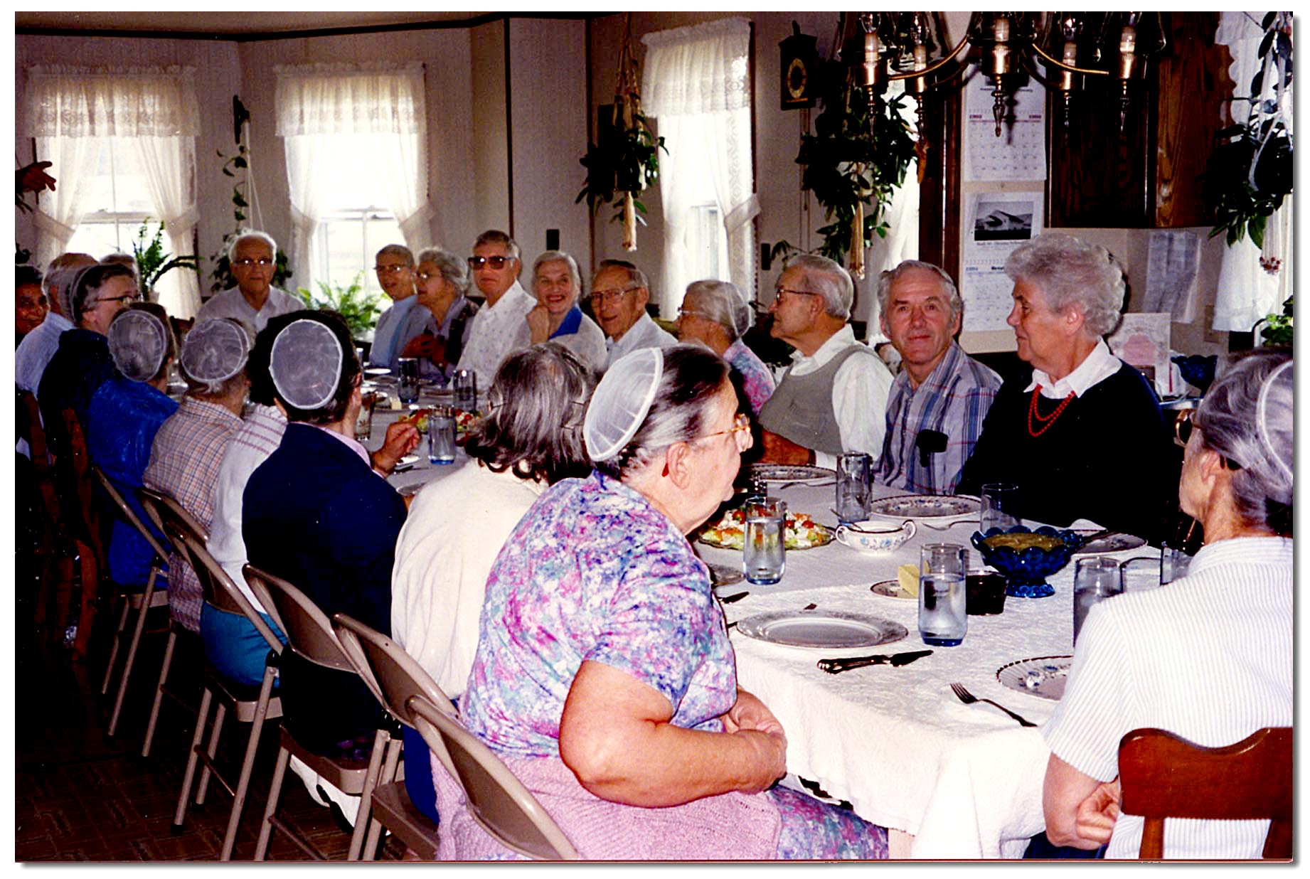 Family dinners can be very large as seen here in Grandma and Aunt Ruthie’s house with twenty, mostly Bossler Mennonite Church friends, gathered around their huge dining table.