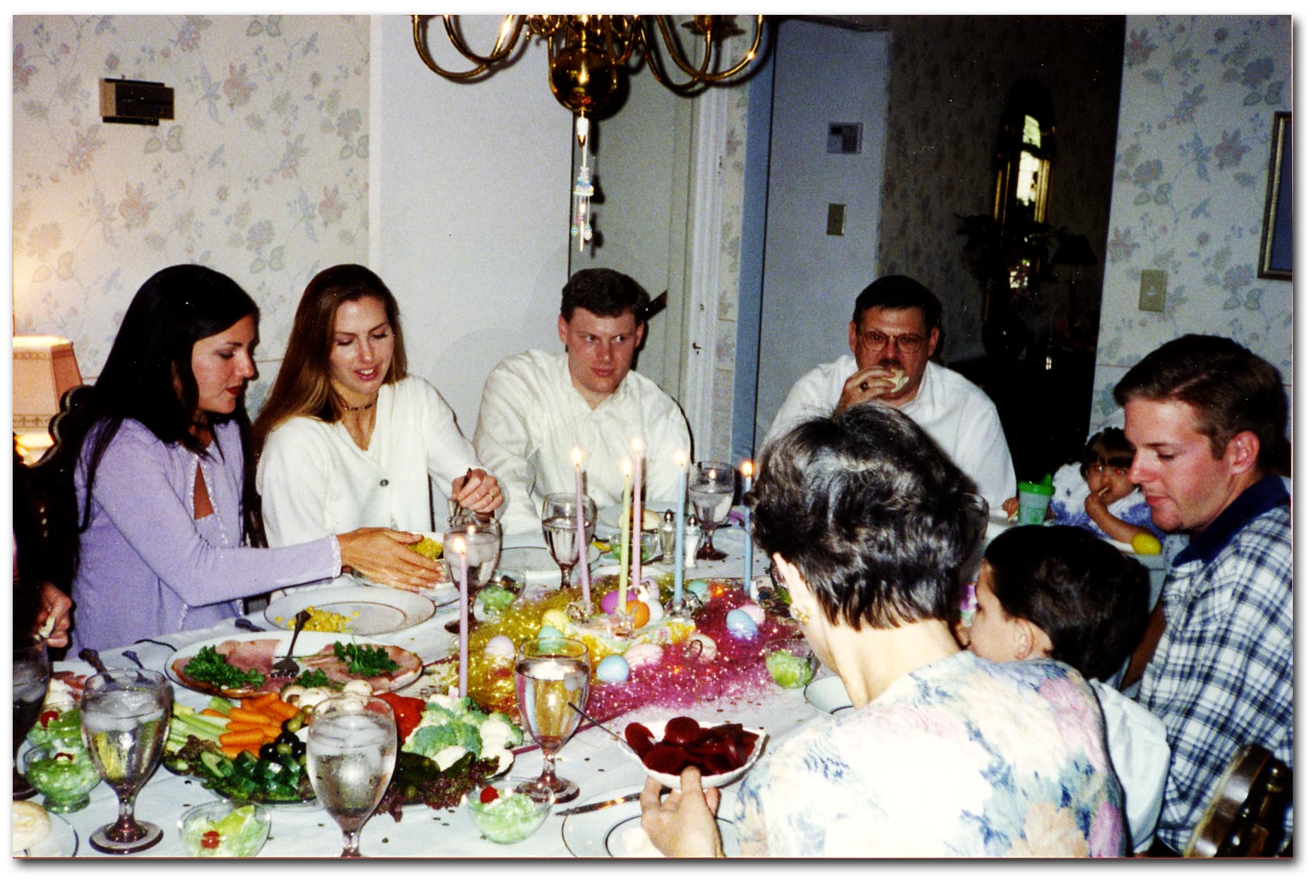Whether large or small, indoors or out, dinners require preparation. My sister Jean and her family provide some of the “raw material” from a shared meal at Mother’s house.