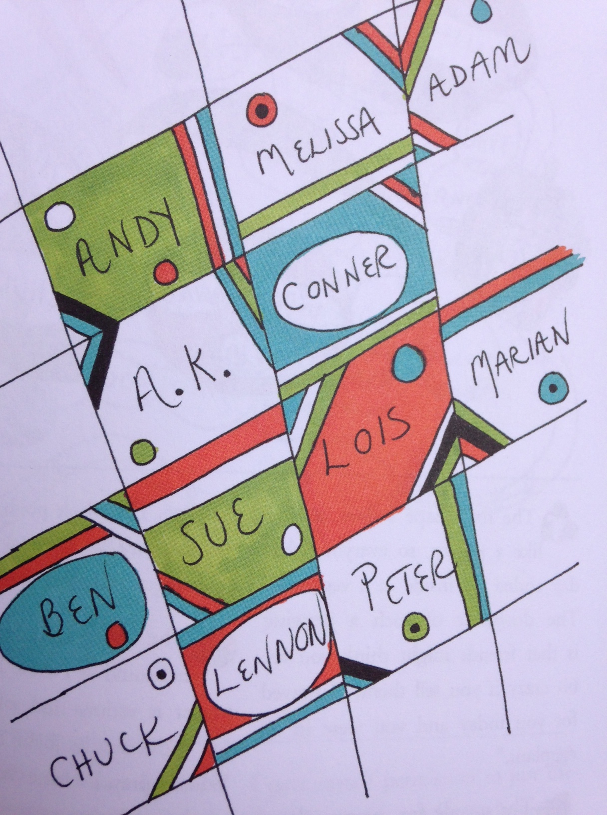 Write the name of someone you want to encircle in love and concern. In a curvilinear model, draw colored designs around the name. Add more names and loops easily as you go along.