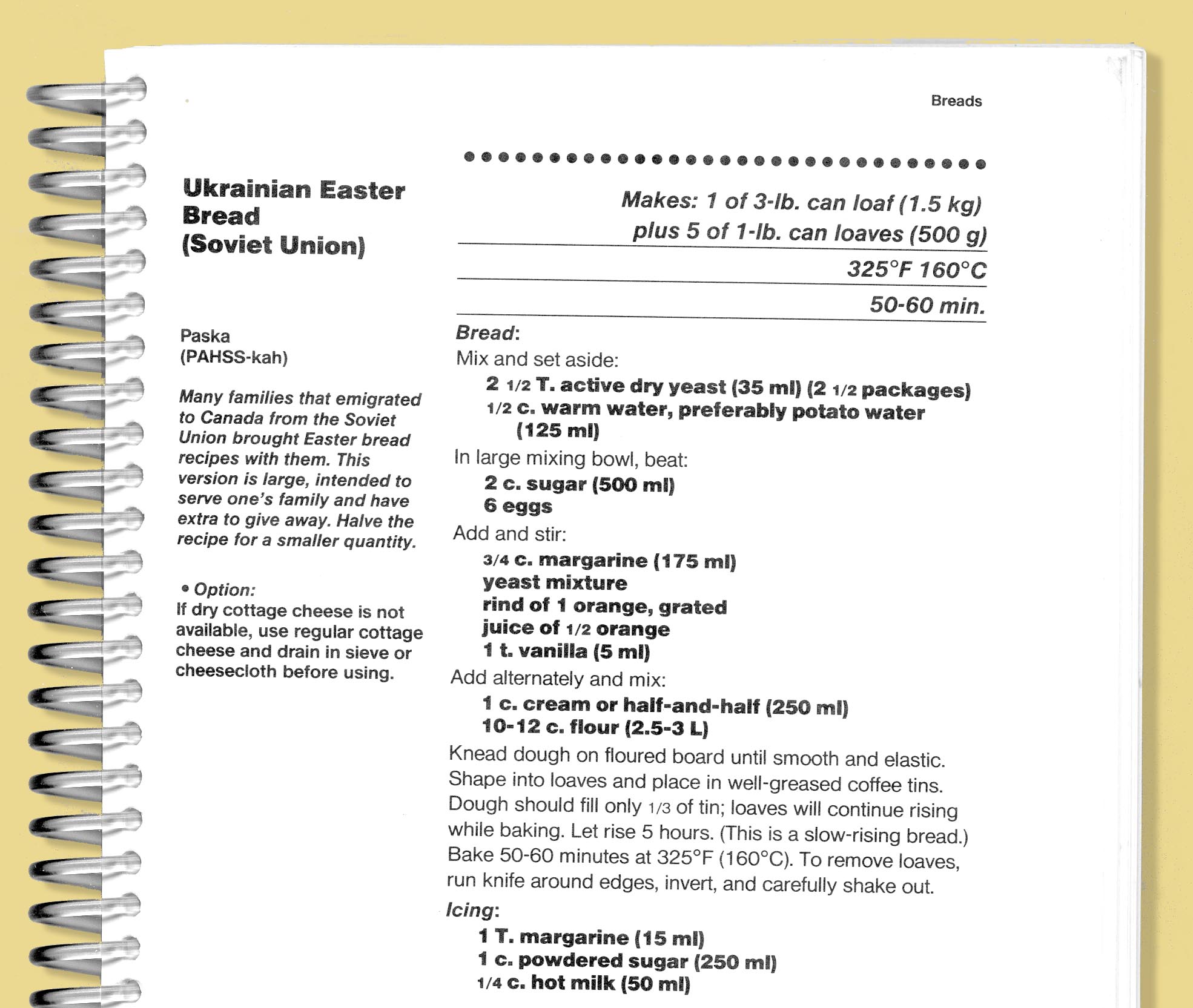 Their special bread is frosted and coated with sprinkles. Here is a recipe for Ukrainian Easter Bread (Paska) from Extending the Table, a World Community Cookbook published by MennoMedia in a revised edition. In my older edition from 1991, the recipe is found on page 65.