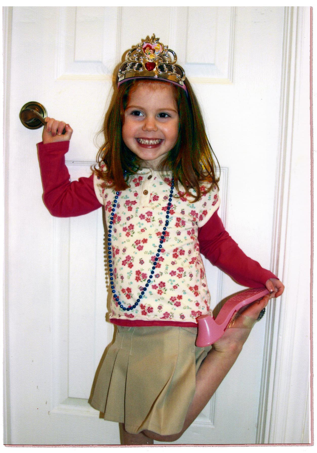 My auburn-haired granddaughter Jenna is very cute, and people frequently tell her how pretty she is. From an early age (here at 3 1/2), she has loved to primp and preen.