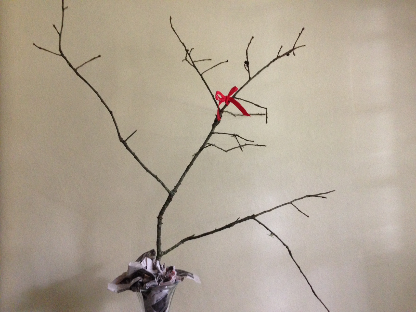 Good grief! I know how Charlie Brown must have felt. But at least his had “a wooden trunk and soft green needles” with a red ball on the end of a branch instead of a timid little ribbon.
