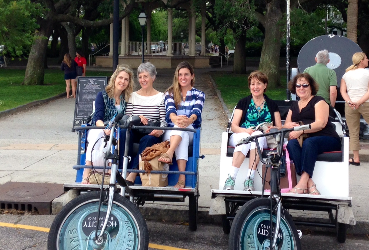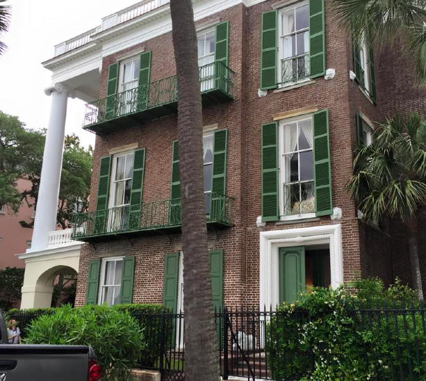 We were on our way out of Charleston during our recent road trip, and my niece Heidi graciously agreed to stop her SUV long enough for me to catch a snapshot of the Grimké House basking in the bright morning sun. Its open arms-double staircase once welcomed visitors with a hospitable hug. (Until recently it housed attorneys’ offices, so you can draw your own conclusion about its more recent history!)