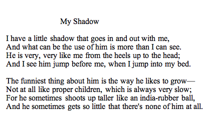 She also recited the verses of “My Shadow” from the “Golden Book of Poetry” 1947 with the familiar first two stanzas: