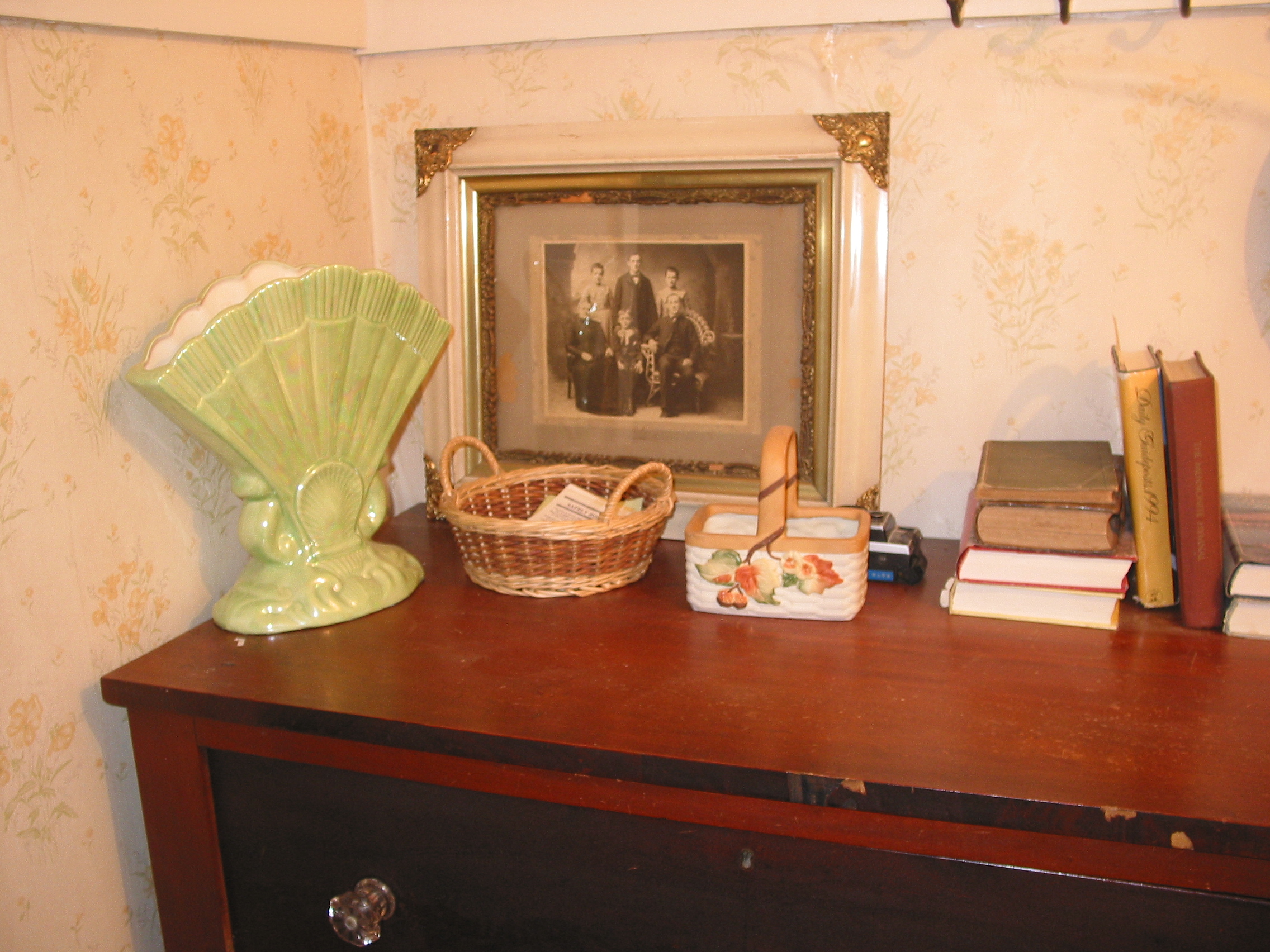 A dressing room of sorts, this small area was a repository for Mother’s own nostalgia: a framed family photograph, old books, the odd china piece on top of the Sheridan chest of drawers.